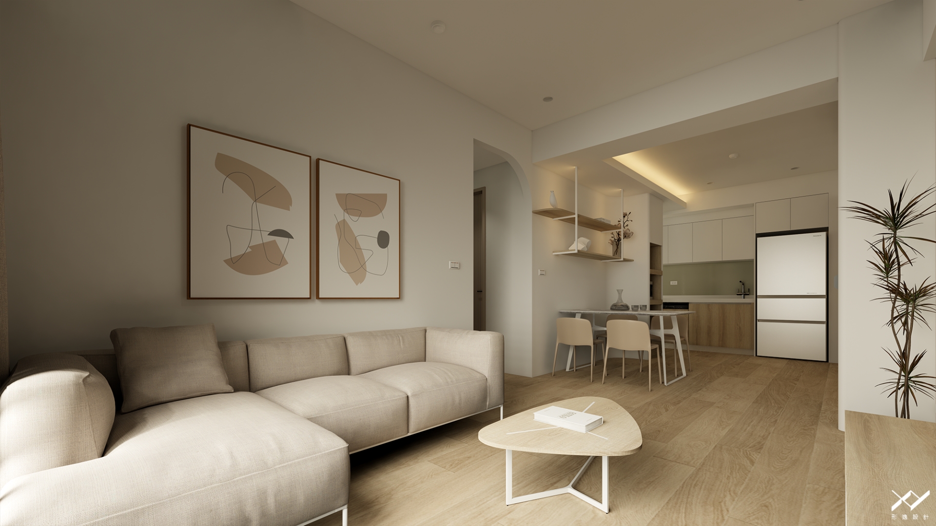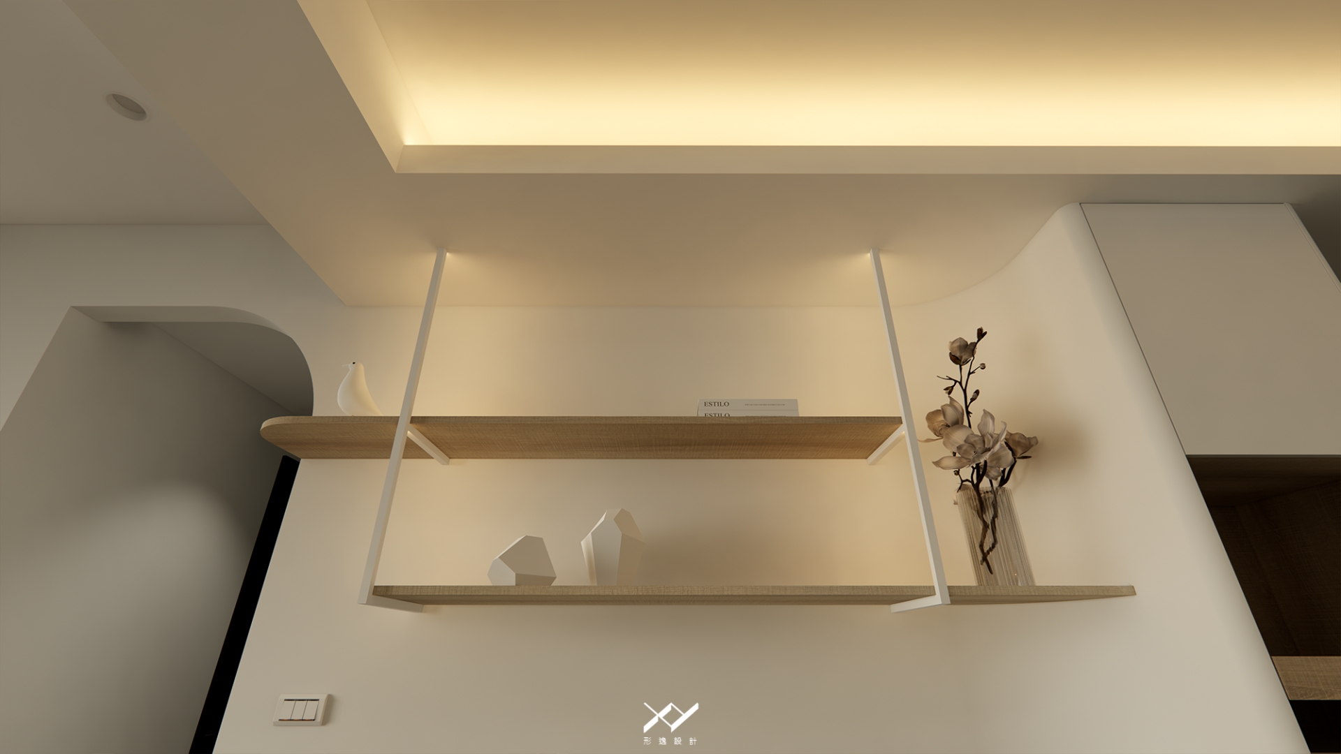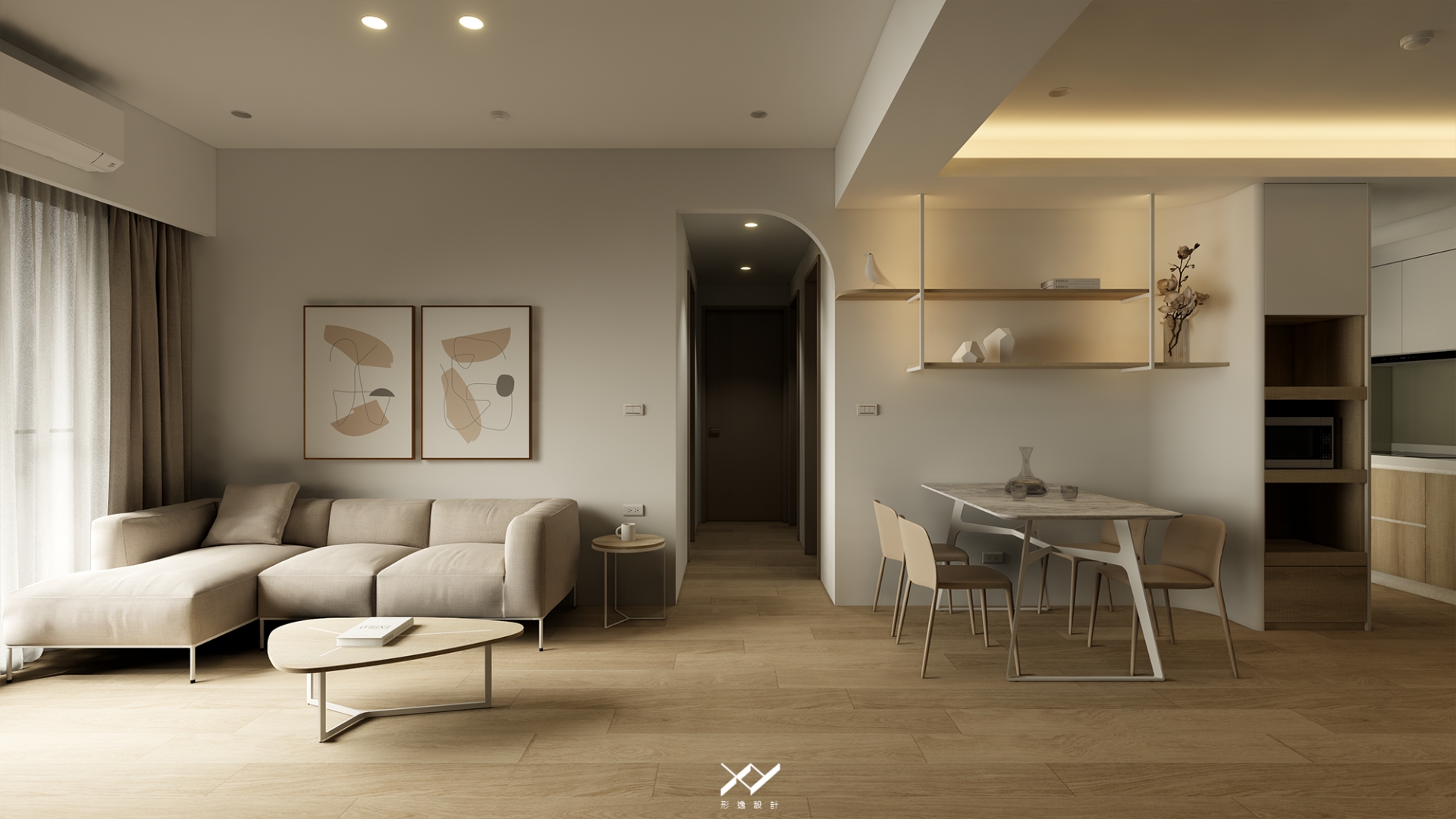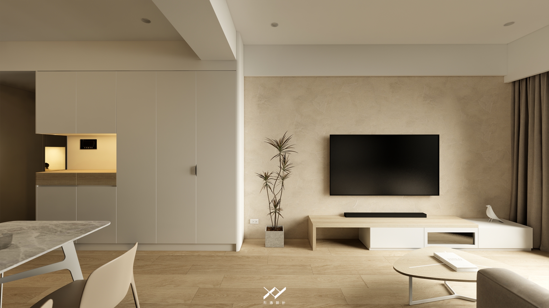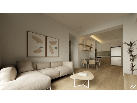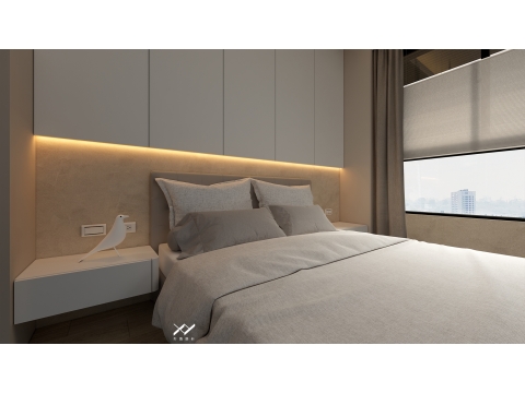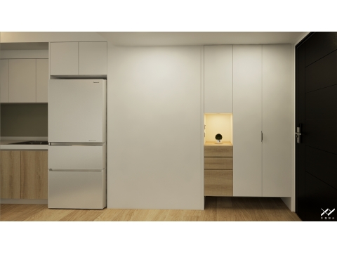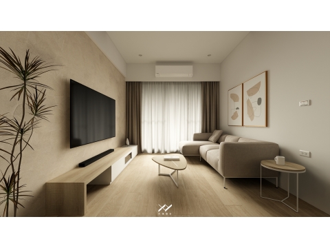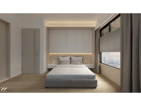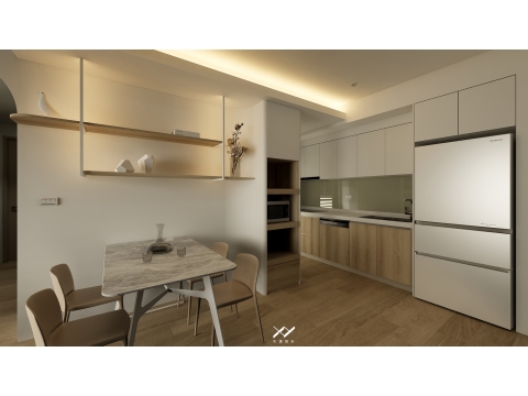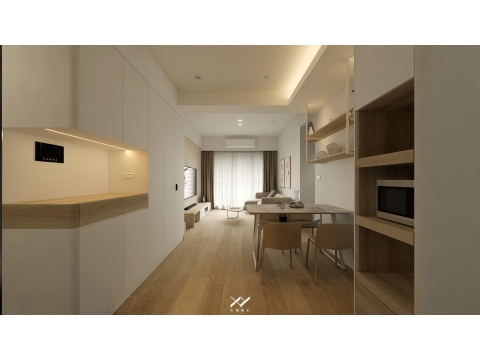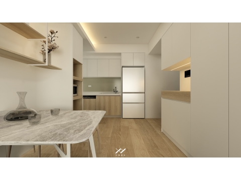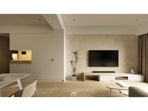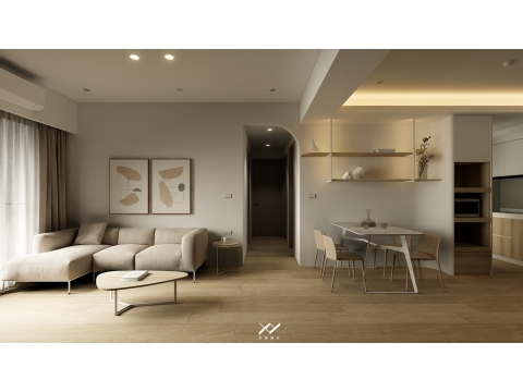 採用簡約柔和的線條設計,沒有複雜的造型,搭配中性色調,以白色.淺木皮色為主,再將空間適當留白,讓視覺上更開闊舒適,