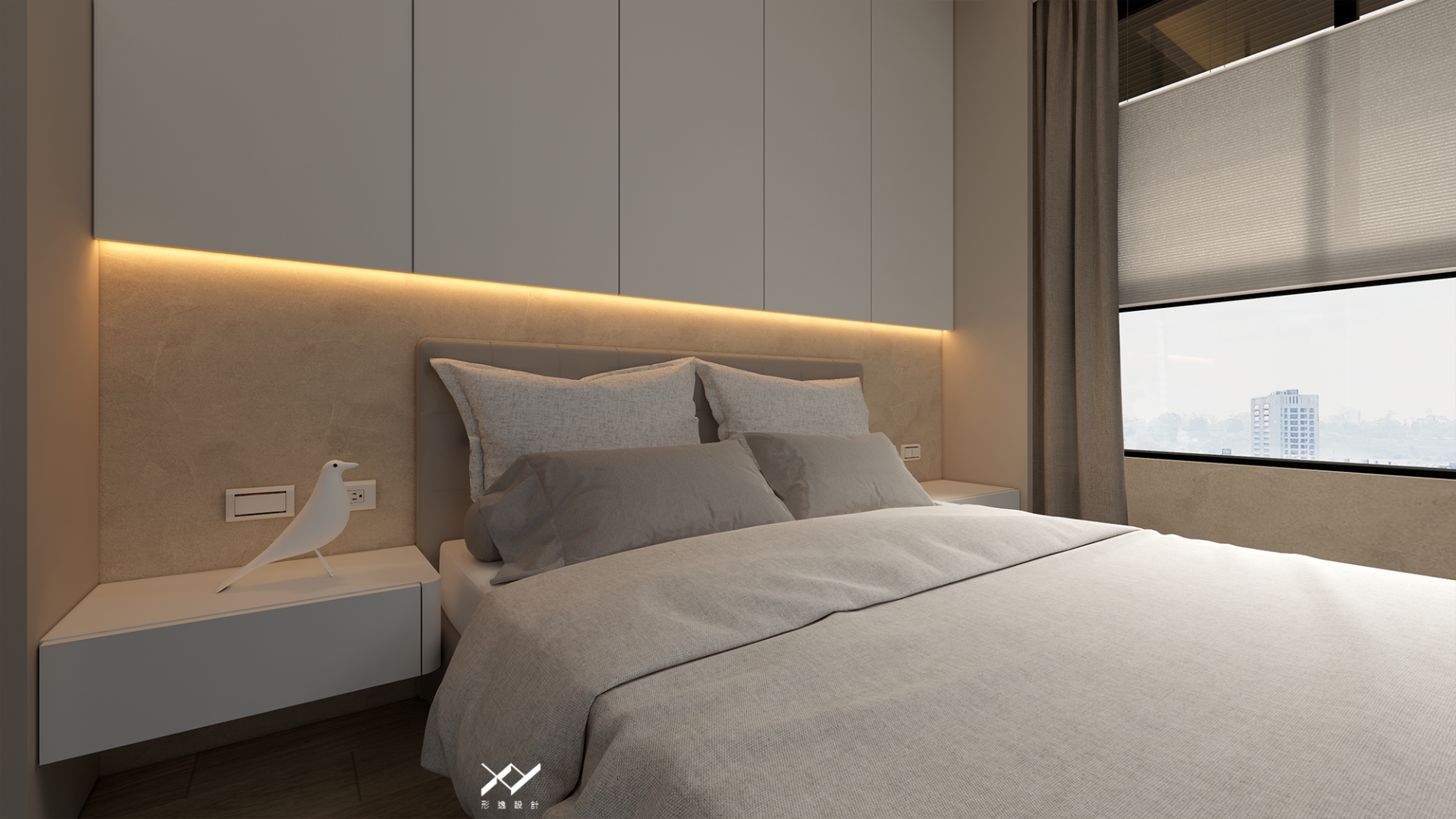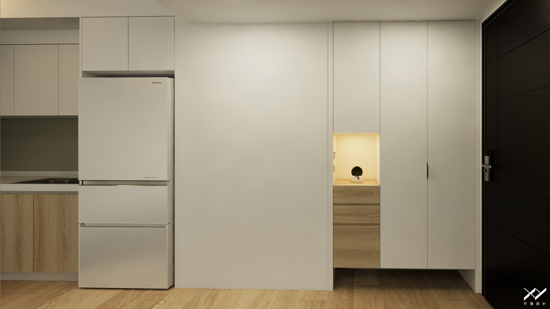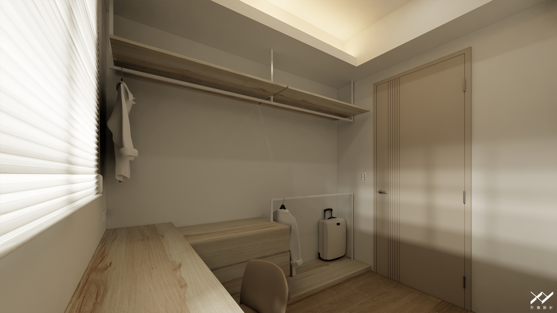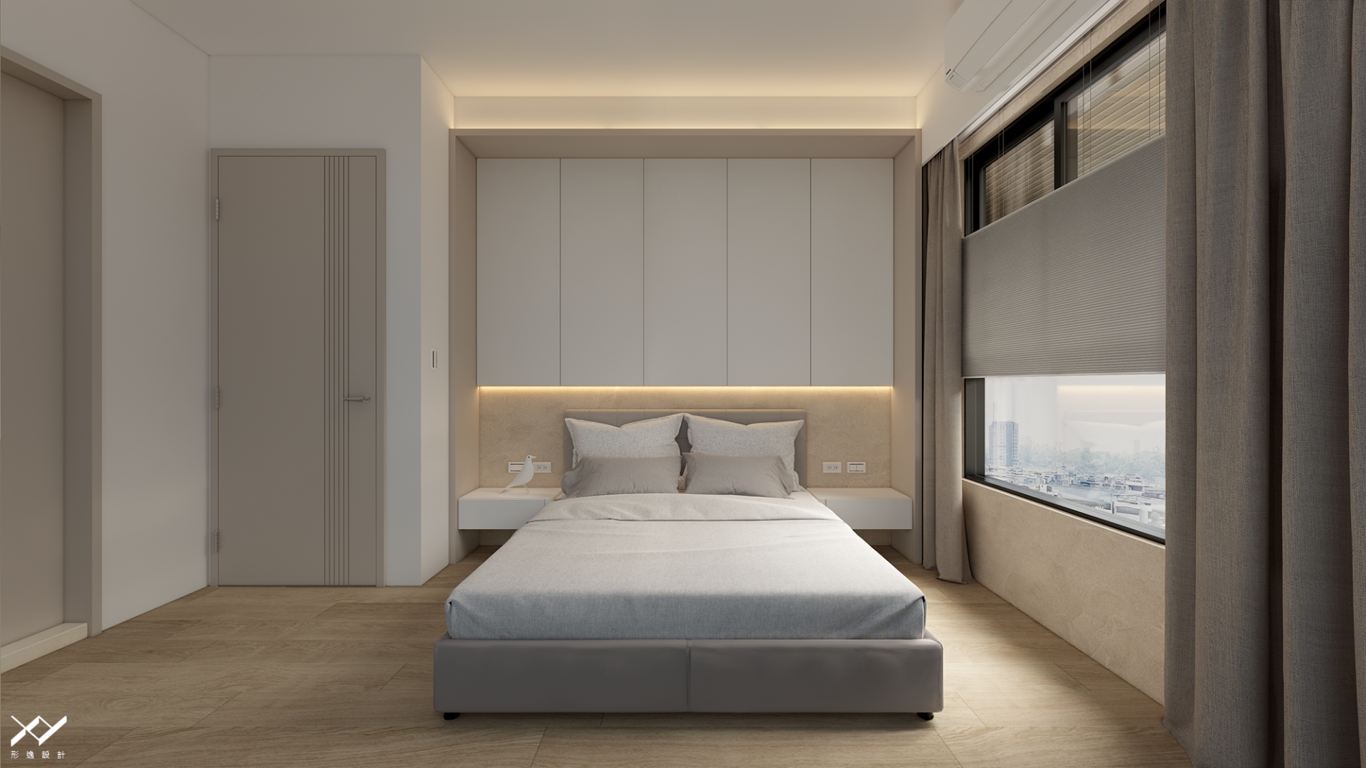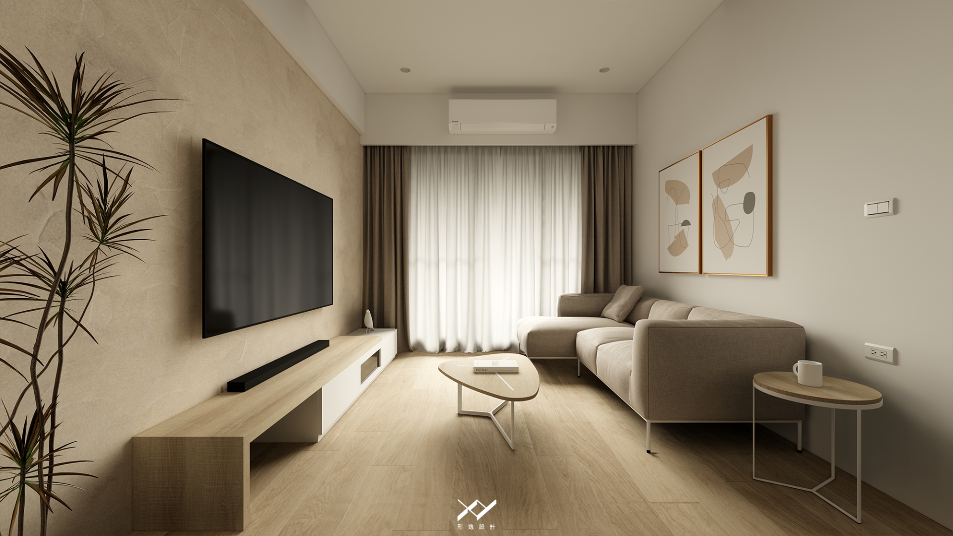 採用簡約柔和的線條設計,沒有複雜的造型,搭配中性色調,以白色.淺木皮色為主,再將空間適當留白,讓視覺上更開闊舒適,